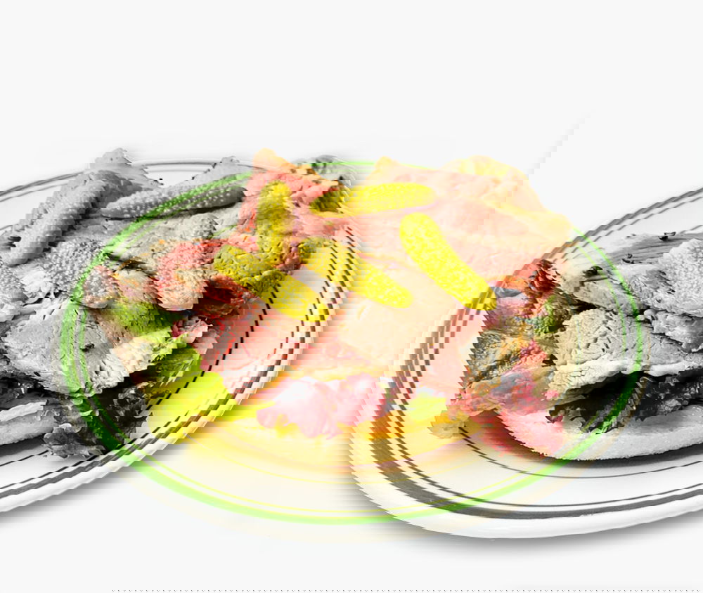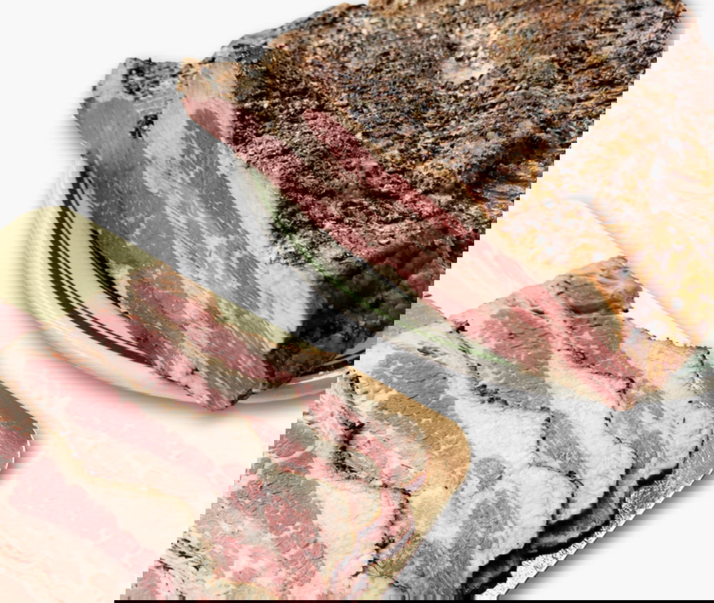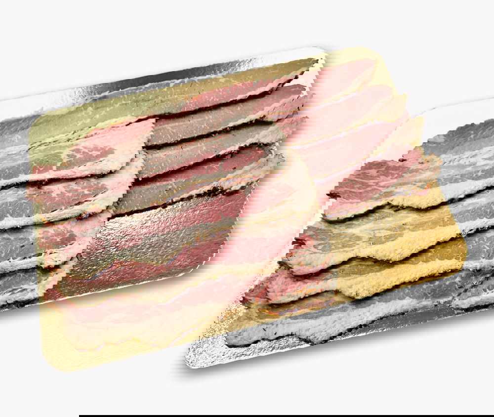 Onze brisket wordt in middelgrote plakken van 2-3 mm gesneden. Voor de beste smaakervaring raden we aan de plakjes brisket op te warmen. Je kunt ook een groter stuk brisket in de oven of op de grill opwarmen en dan in plakken snijden. Bedek het vlees met aluminiumfolie tijdens het opwarmen om het sappig te houden.