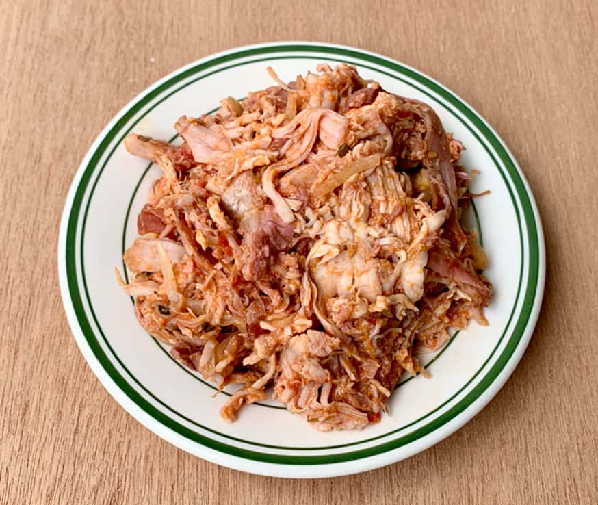 Ingrediënten: kalkoenvlees, tomaten, uien, chipotle pepers, gerookte paprika poeder, komijn, knoflook, oregano, laurier